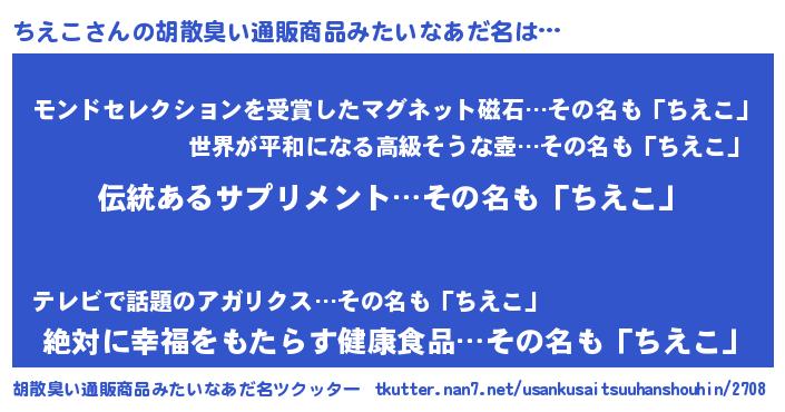 | 意味不明あだ名 | 『とにかく怪しいちえこ』『自称ちえこ』 |