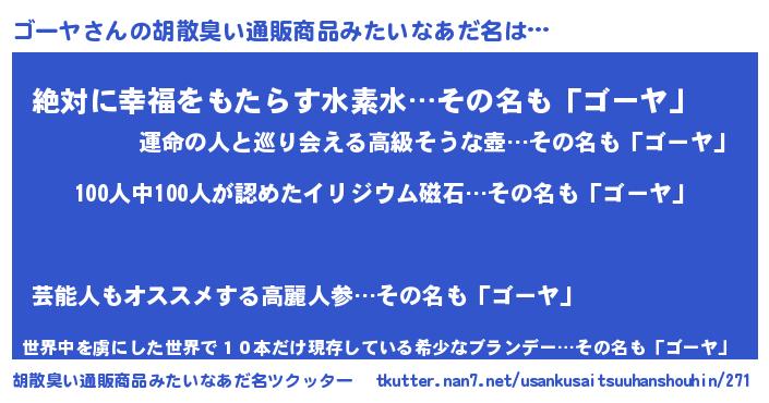| ヘコむあだ名 | 『ゴーヤ(笑)』『牛乳』『ゴーもー』 |