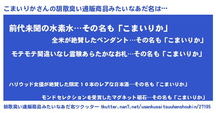 | 欧米人風あだ名 | 『こまいりか・ステッグマイヤー』 |