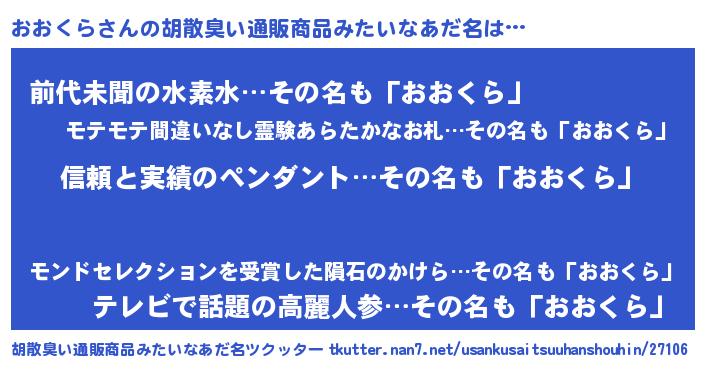 | ヘコむあだ名 | 『おおっちょ』『おおくら(遠い目)』 |