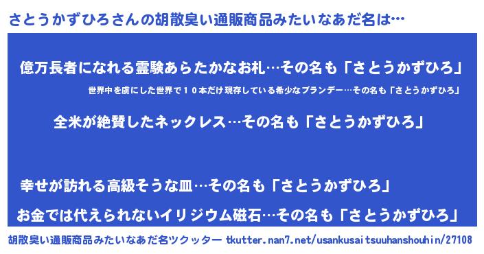 | 意味不明あだ名 | 『とにかく怪しいさとうかずひろ』 |