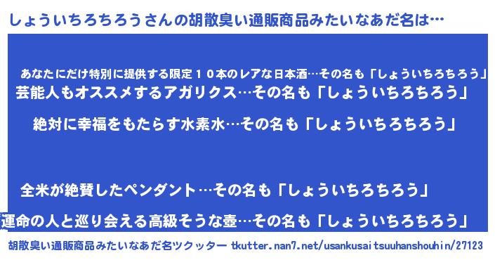| ヘコむあだ名 | 『しょういちろちろう(震え声)』『レバニラ』 |