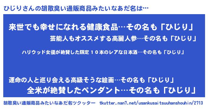 | ヘコむあだ名 | 『ひじり(苦笑)』『ひじぷりん』 |