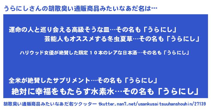 | ヘコむあだ名 | 『つくし』『うらにし(笑)』 |