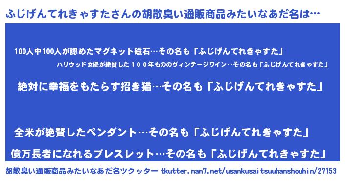 | 意味不明あだ名 | 『永久保存ふじげんてれきゃすた』 |