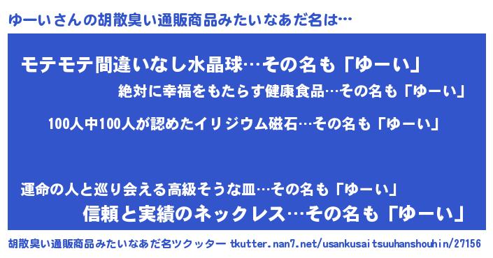 | 意味不明あだ名 | 『エリンギ科ゆーい属』『ペロリンゆーい』 |