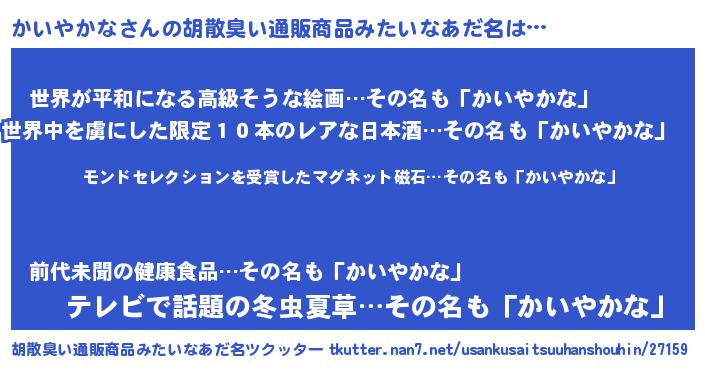 | ヘコむあだ名 | 『酢こんぶ』『かいやかな(笑)』 |