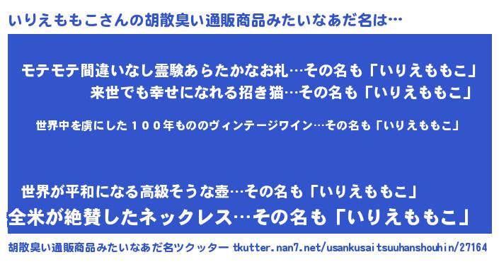 | 意味不明あだ名 | 『住所不定無職いりえももこ(11歳)』 |