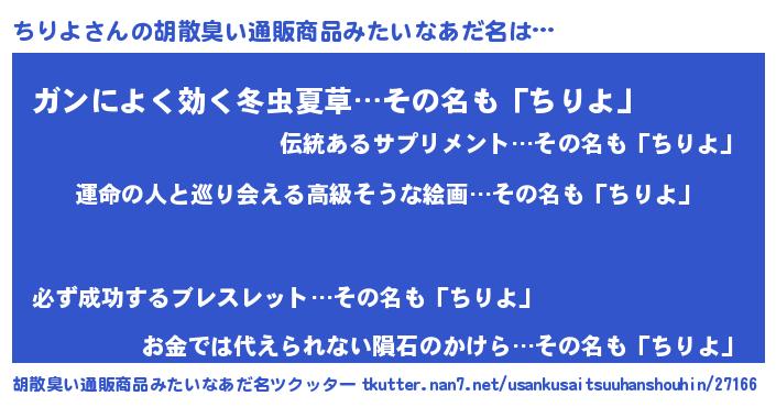 | 意味不明あだ名 | 『ちりよフォーエバー』『自称ちりよ』 |