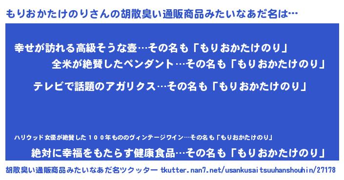 | 意味不明あだ名 | 『自称もりおかたけのり』 |