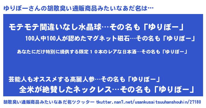 | ヘコむあだ名 | 『ゆりふぇ~』『ゆり太郎』 |