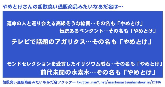 | ポケモン風あだ名 | 『ヤメセウス』『ヤメトダネ』 |