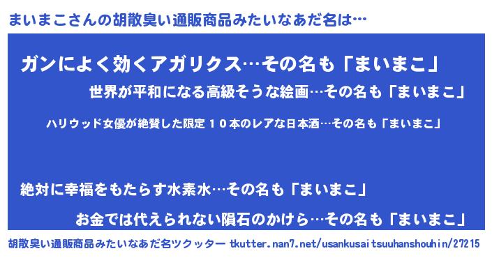 | 肩書あだ名 | 『まいまこ少尉』『まいまこディレクター』 |