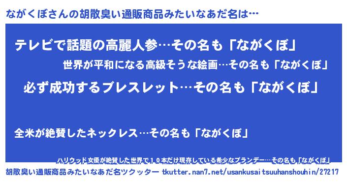 | ヘコむあだ名 | 『ながにー』『なまこ酢』『ながお』 |
