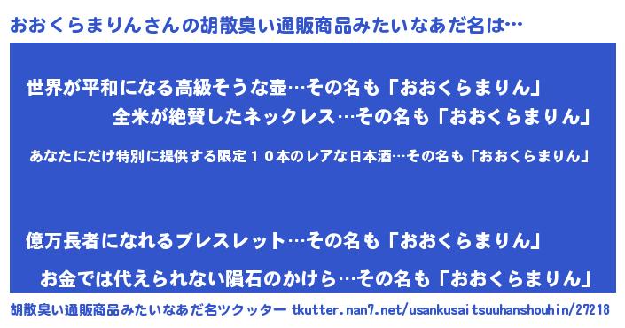 | 意味不明あだ名 | 『住所不定無職おおくらまりん(59歳)』 |