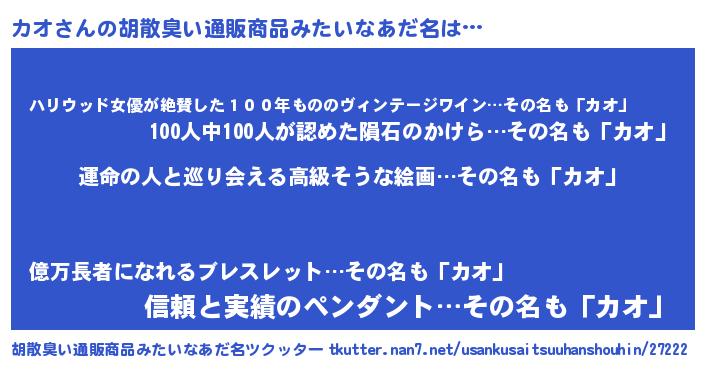 | ヘコむあだ名 | 『酢こんぶ』『カオお』『カオにゅー』 |