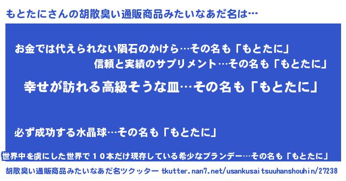 | 肩書あだ名 | 『もとたに国家主席』『もとたに中将』 |