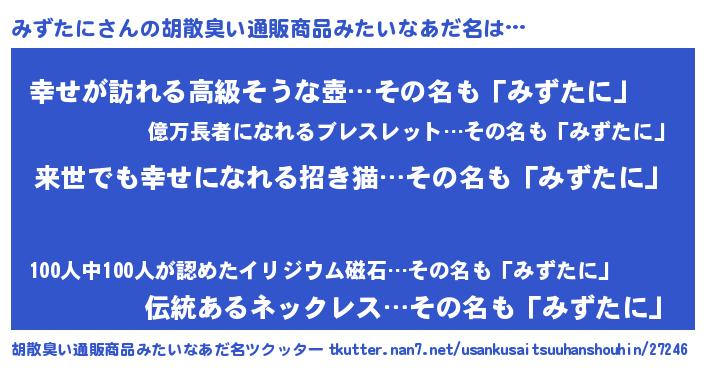| 男性向けラノベタイトル風あだ名 | 『みずたにという概念が存在しない退屈な世界 』 |