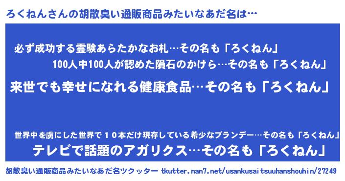 | ヘコむあだ名 | 『ろくねん(笑)』『ろくにー』 |