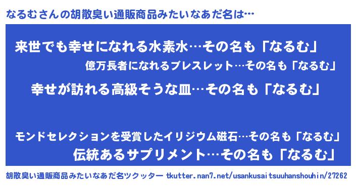 | 肩書あだ名 | 『なるむ中将』『なるむ国家主席』 |