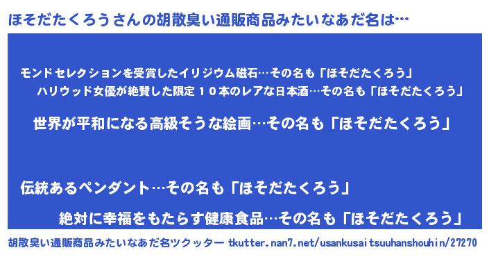| 意味不明あだ名 | 『ほそだたくろうフォーエバー』 |