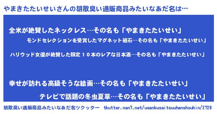 | 欧米人風あだ名 | 『ダレノガレやまきたたいせい』 |
