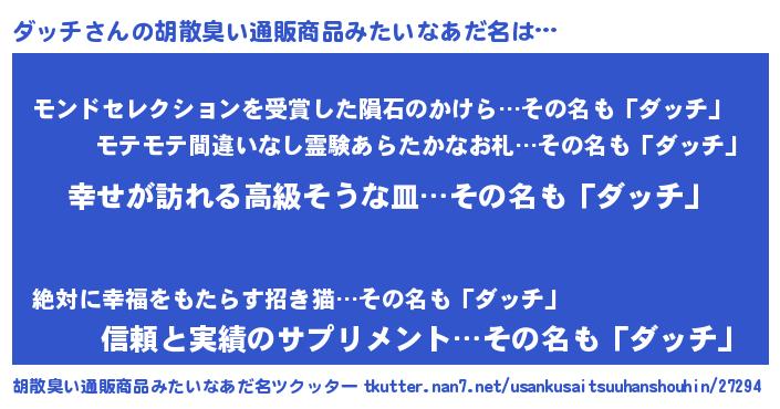 | ヒーロー風カッコイイあだ名 | 『ウルトラダッチマン』『黄金騎士ダッ』 |