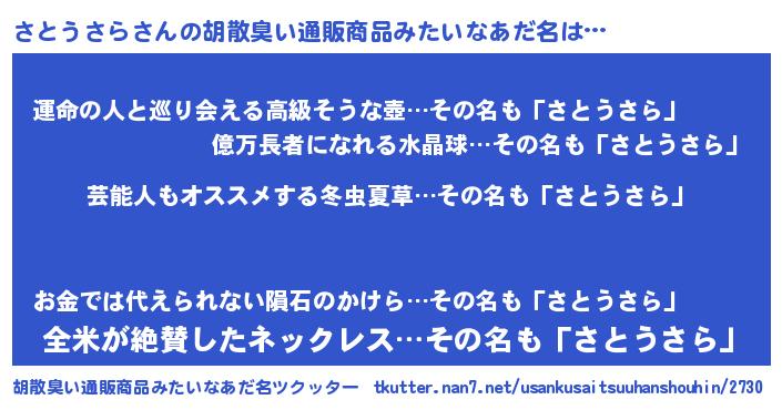 | 意味不明あだ名 | 『自称さとうさら』『ペロリンさとうさら』 |
