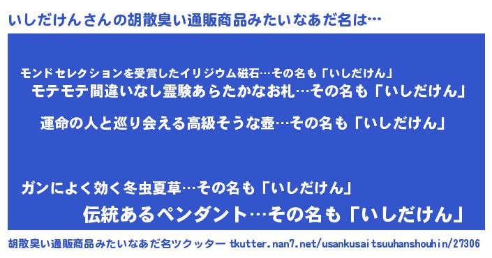 | 意味不明あだ名 | 『いしだけんフォーエバー』 |