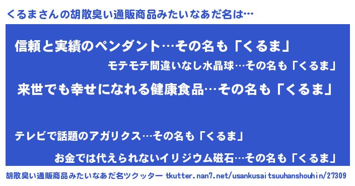 | ヘコむあだ名 | 『くるま(苦笑)』『くるっちょ』 |