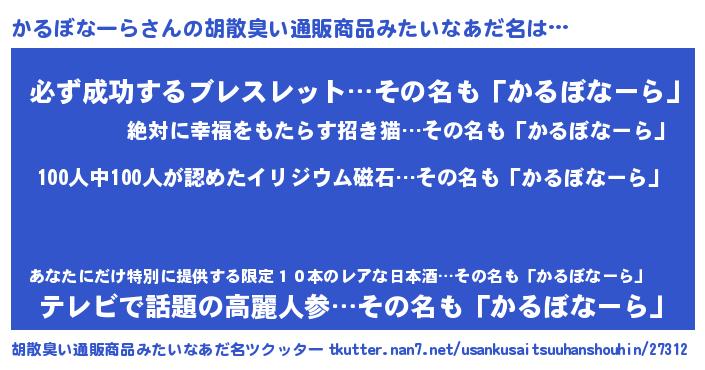 | ヘコむあだ名 | 『かるにゅー』『かるぼなーら(笑)』 |