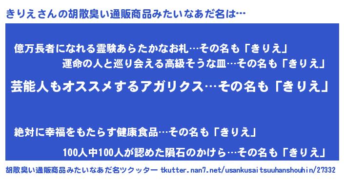 | 欧米人風あだ名 | 『ケンブリッジきりえ』『マイケルきりえ』 |