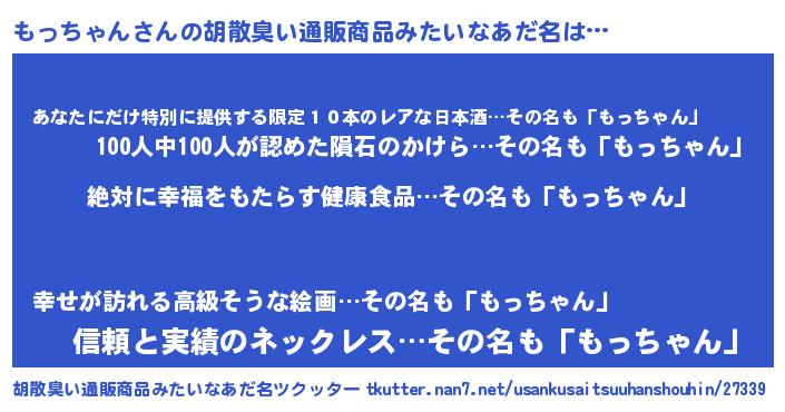 | ヘコむあだ名 | 『もっちゃん(爆)』『もっぷりん』 |