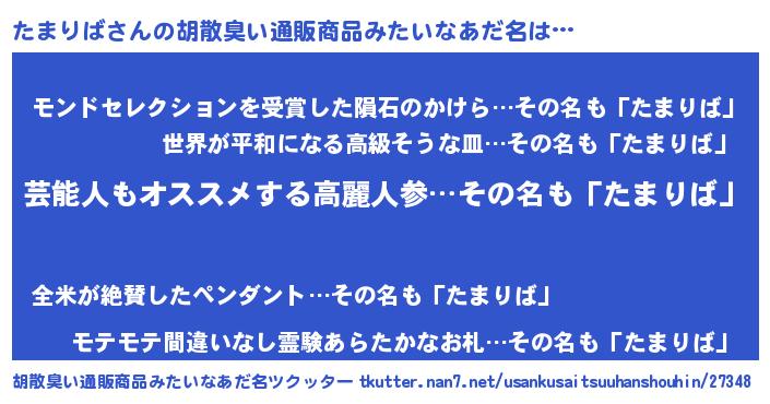 | 意味不明あだ名 | 『自称たまりば』『ペロリンたまりば』 |