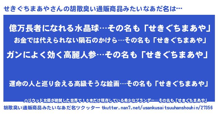 | 恥ずかしいあだ名 | 『セキグチマアヤデラックス』 |