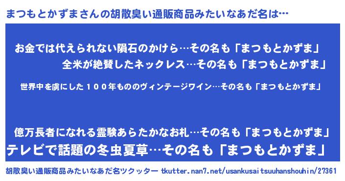 | 意味不明あだ名 | 『住所不定無職まつもとかずま(6歳)』 |