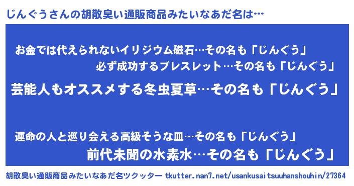 | 意味不明あだ名 | 『自称じんぐう』『永久保存じんぐう』 |