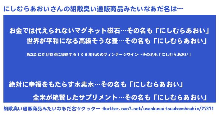 | 意味不明あだ名 | 『住所不定無職にしむらあおい(11歳)』 |