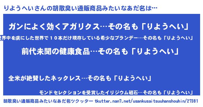 | 意味不明あだ名 | 『永久保存りようへい』『自称りようへい』 |