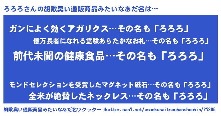 | ヘコむあだ名 | 『ろろろ(爆)』『ろろっ子』『つくし』 |