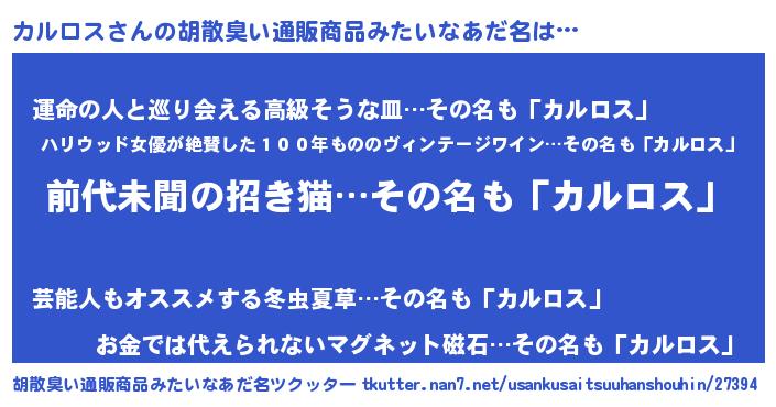 | 意味不明あだ名 | 『永久保存カルロス』『自称カルロス』 |
