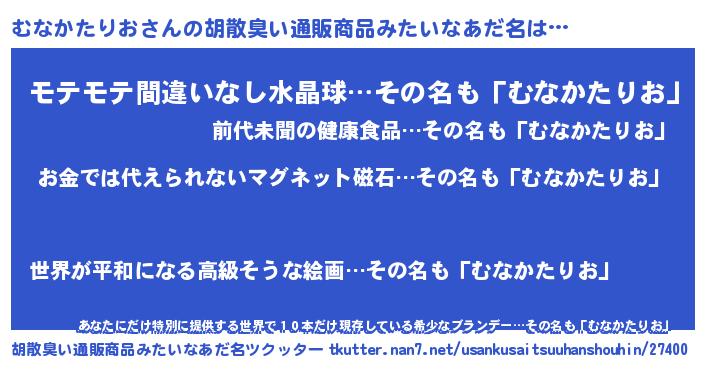 | ヘコむあだ名 | 『むなふぇ~』『むなかたりお(笑)』 |
