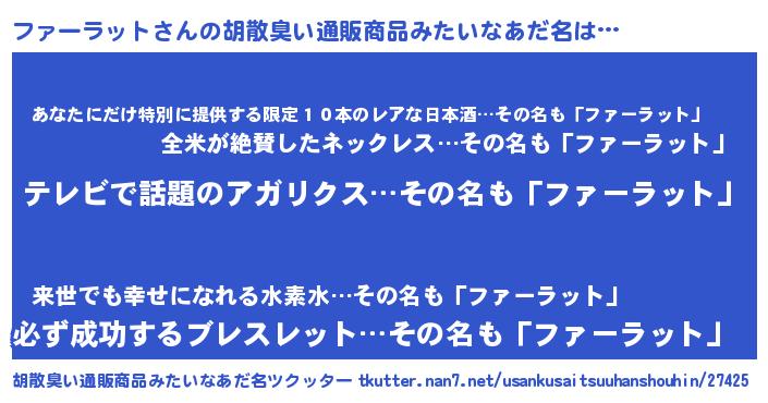 | 意味不明あだ名 | 『自称ファーラット』 |