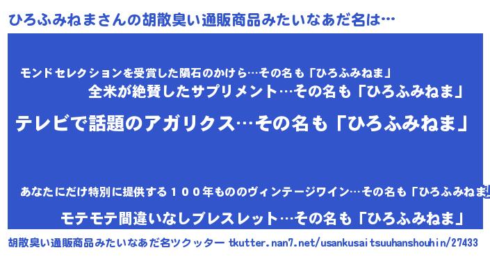 | 意味不明あだ名 | 『自称ひろふみねま』 |