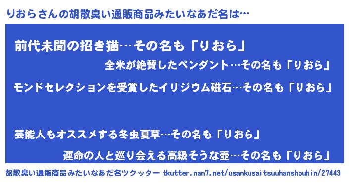 | 肩書あだ名 | 『りおら大尉』『りおら助教授』 |