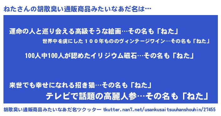 | 意味不明あだ名 | 『眠気覚ましガムねた味』『自称ねた』 |