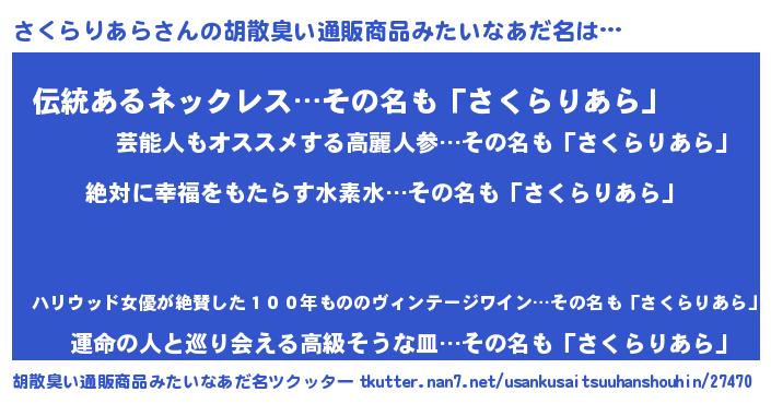 | ヘコむあだ名 | 『さくらりあら(苦笑)』『さくっ子』 |