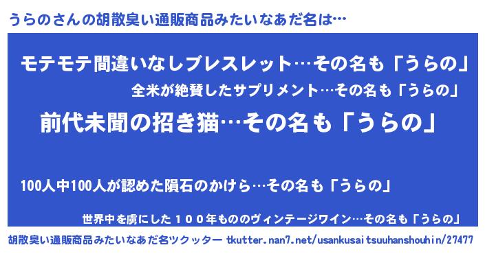 | ヘコむあだ名 | 『うらの(小並感)』『うらにゅー』 |