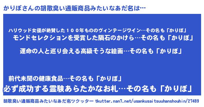 | 欧米人風あだ名 | 『かりぼクリステル』『ダレノガレかりぼ』 |