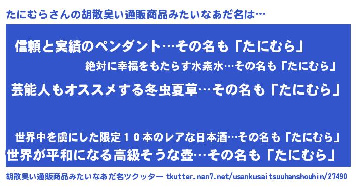 | 意味不明あだ名 | 『自称たにむら』『たにむらフォーエバー』 |